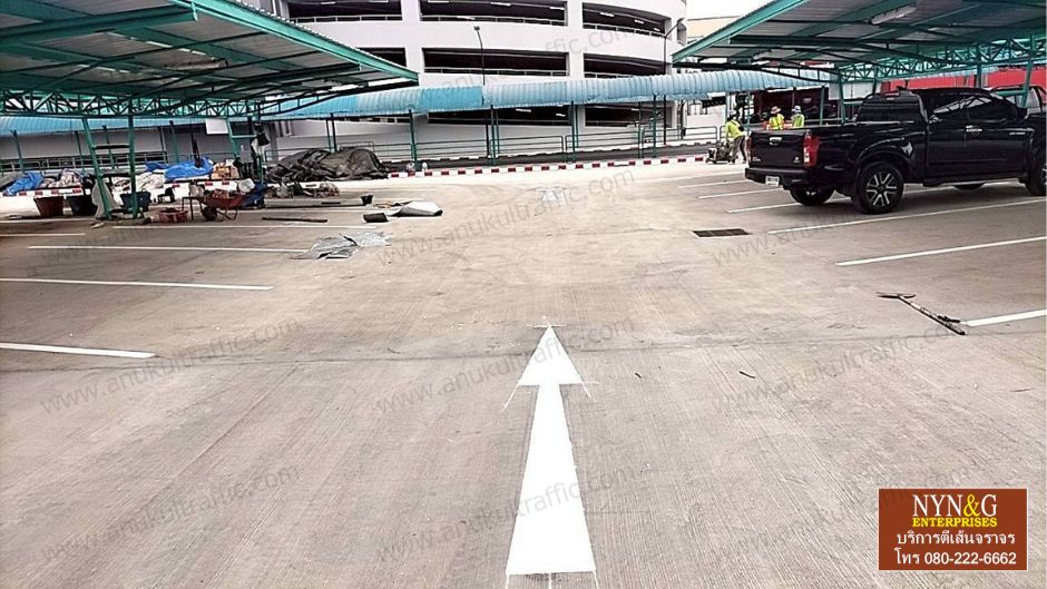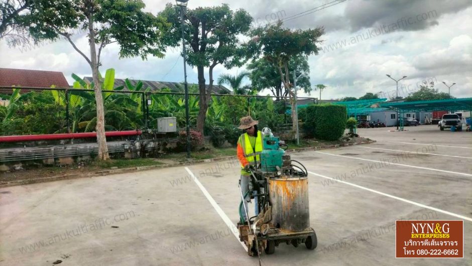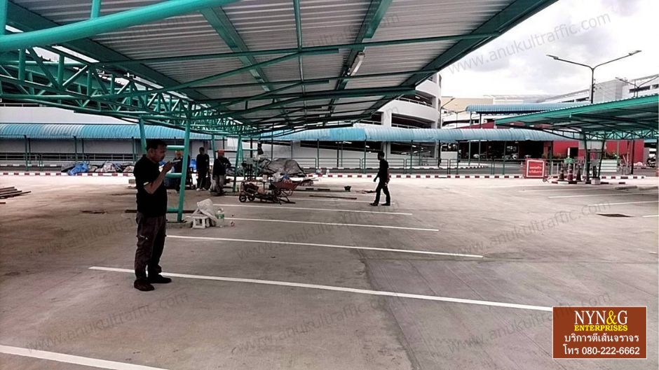 - งานตีเส้นลานจอดรถ งานสัญลักษณ์ ทางเดิน ด้วย สีเทอร์โมพลาสติก