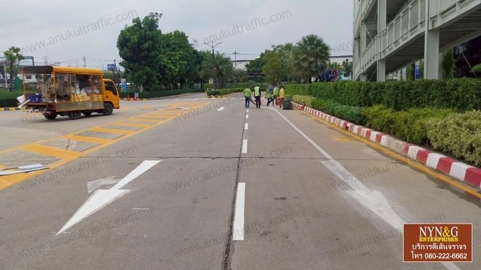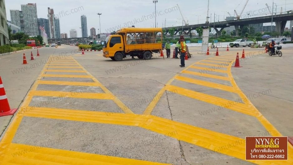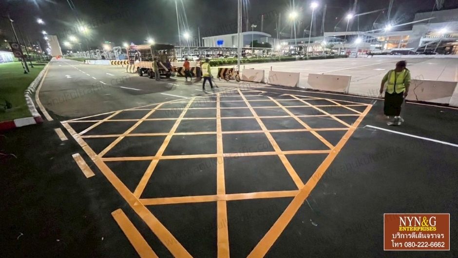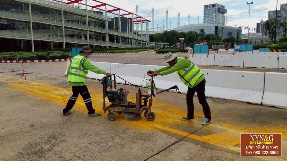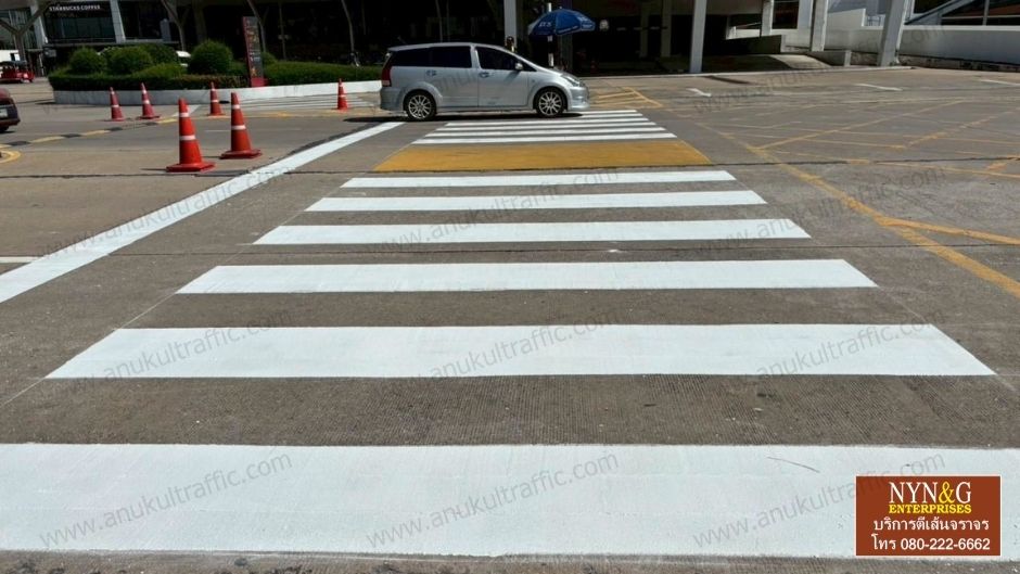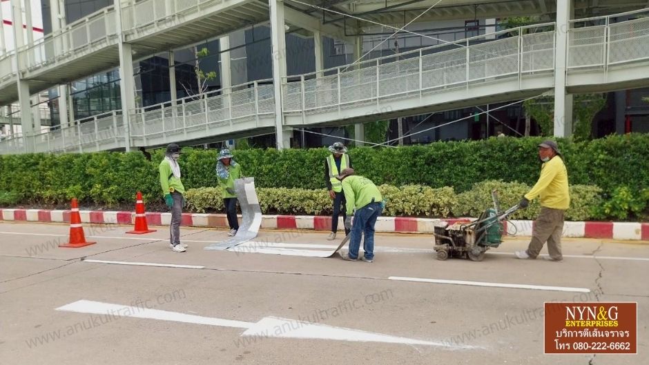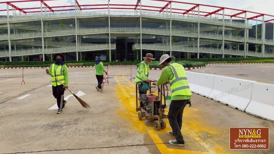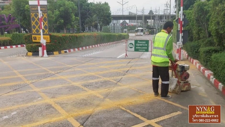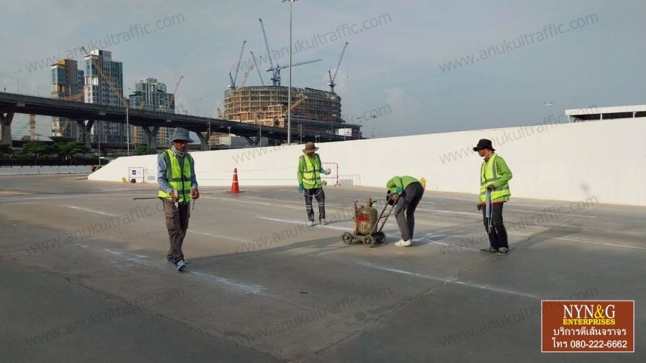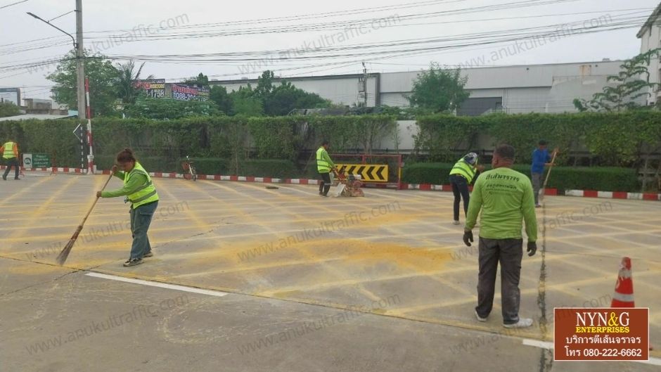 - งานตีเส้นลานจอดรถ งานสัญลักษณ์ ทางเดิน ด้วย สีเทอร์โมพลาสติก