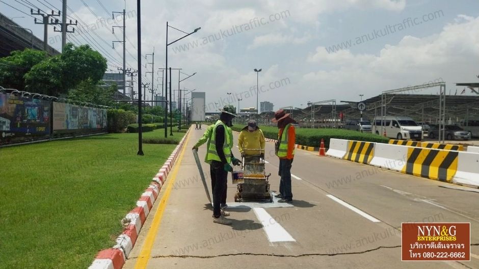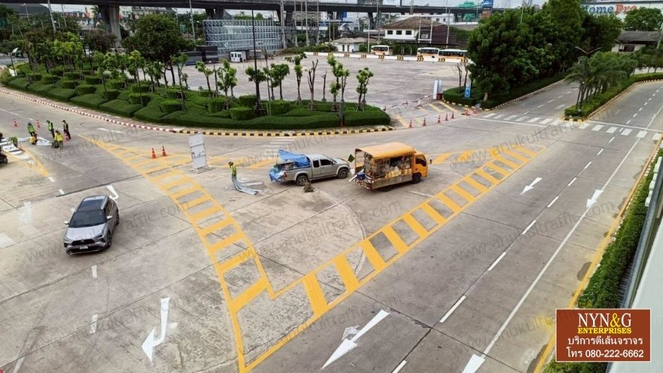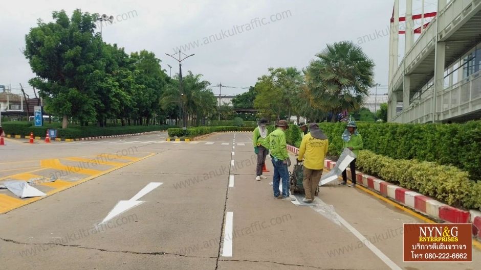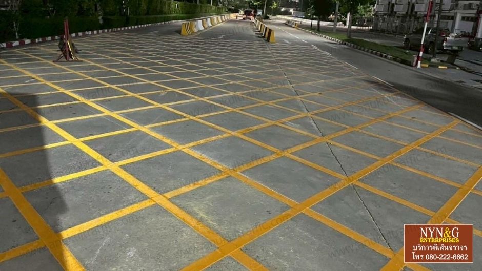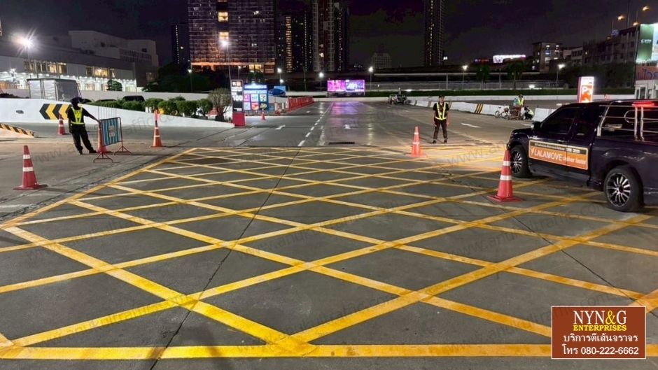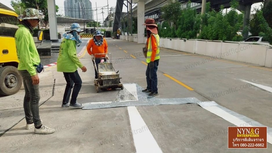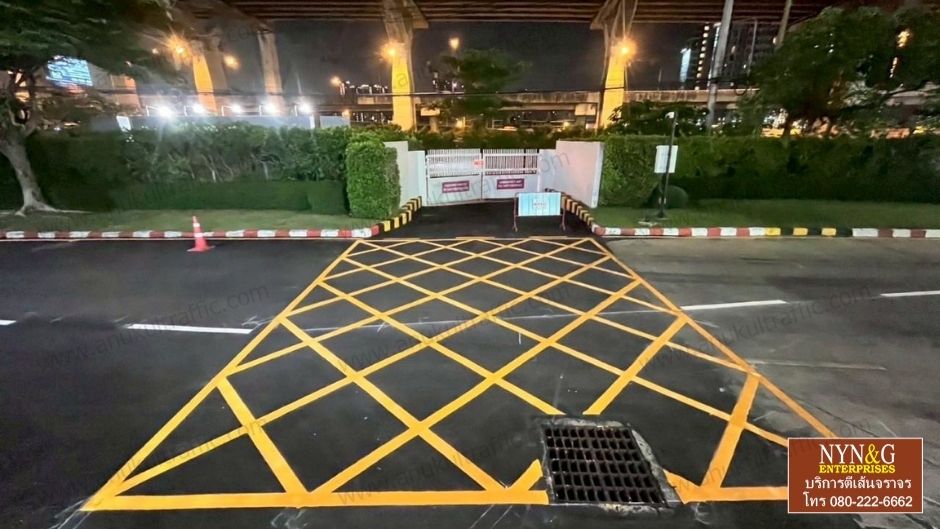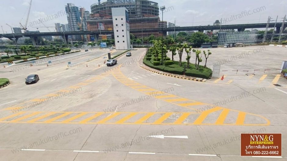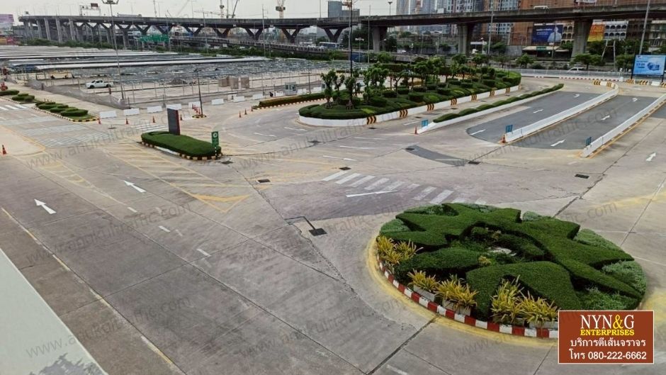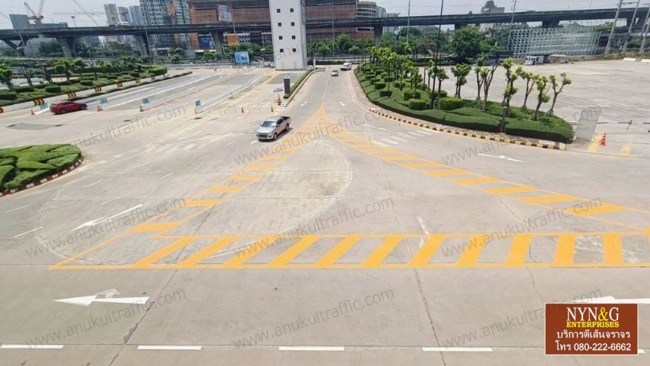 - งานตีเส้นลานจอดรถ งานสัญลักษณ์ ทางเดิน ด้วย สีเทอร์โมพลาสติก