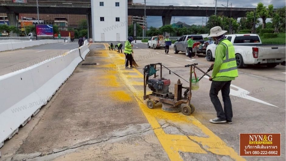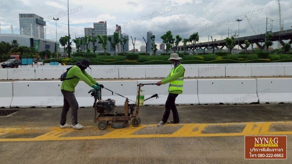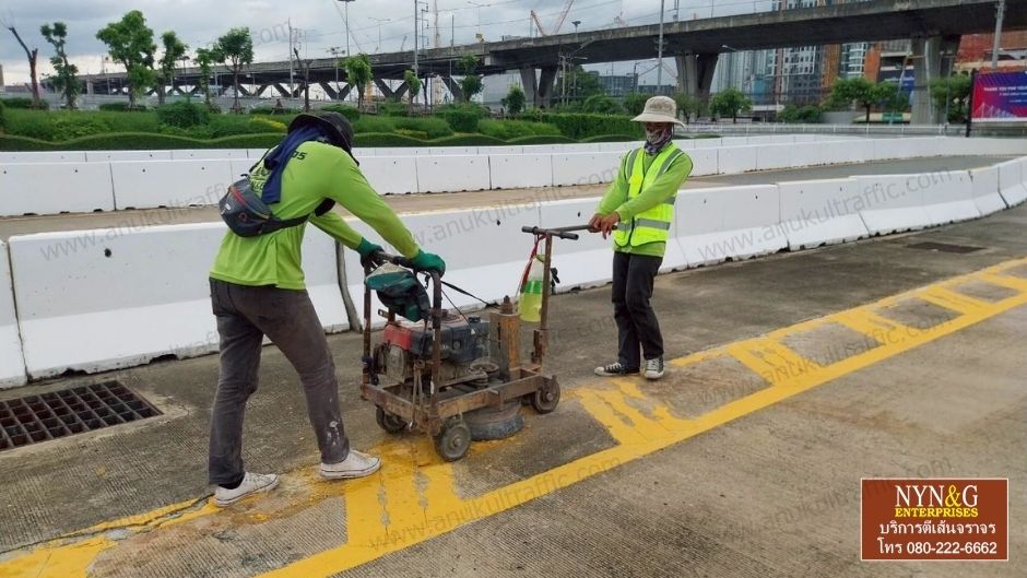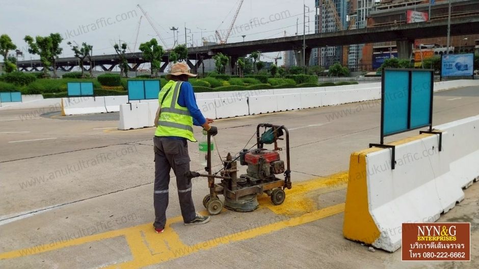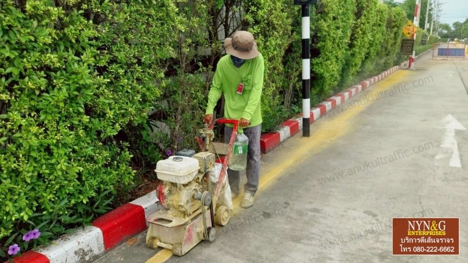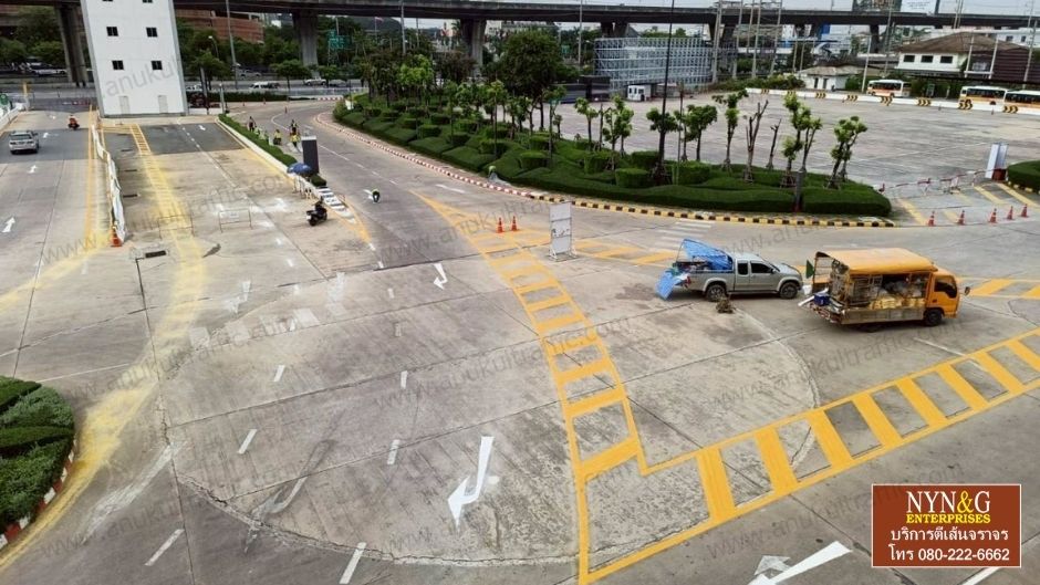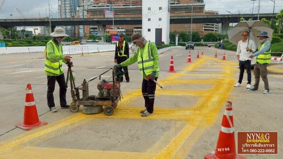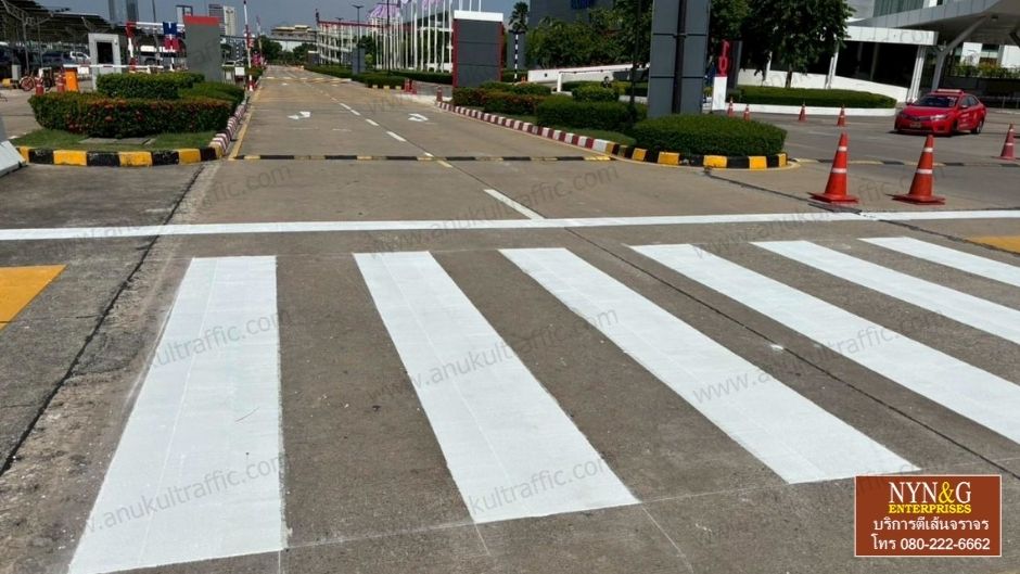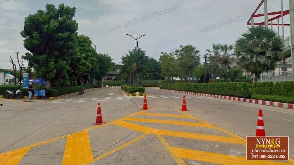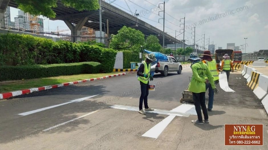 - งานตีเส้นลานจอดรถ งานสัญลักษณ์ ทางเดิน ด้วย สีเทอร์โมพลาสติก